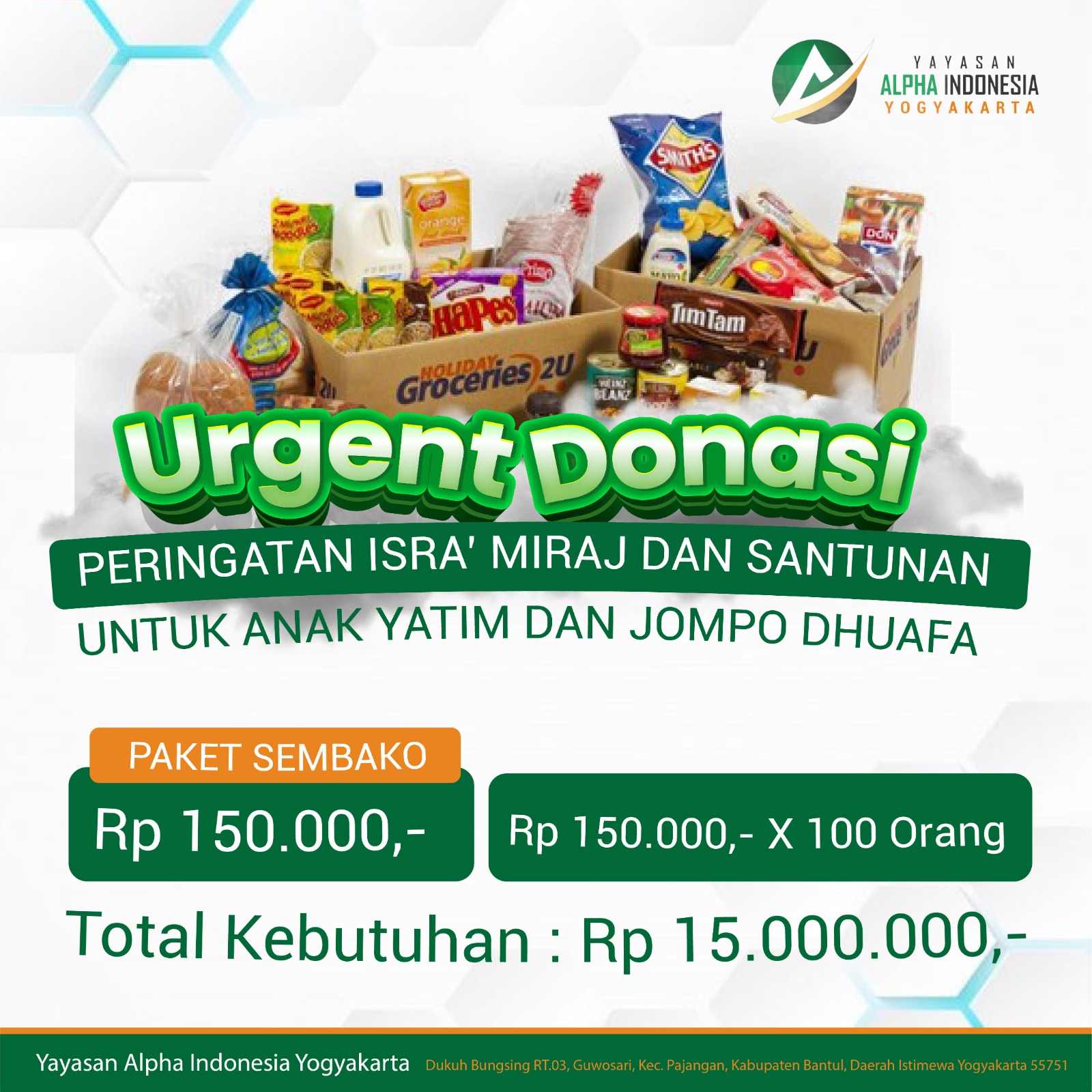 Lancarkanlah Ikhtiar Yayasan Alpha Indonesia Untuk Kebutuhan Peringatan ISRA'MIRAJ Rajab 1444 / Februari 2023, Ketuklah Hati Para Muhsinin Dan Muhsinat Yg Ringan Tangan Untuk Membantu Sukses'y Acara Peringantab Isra 'Miraj 1444 H