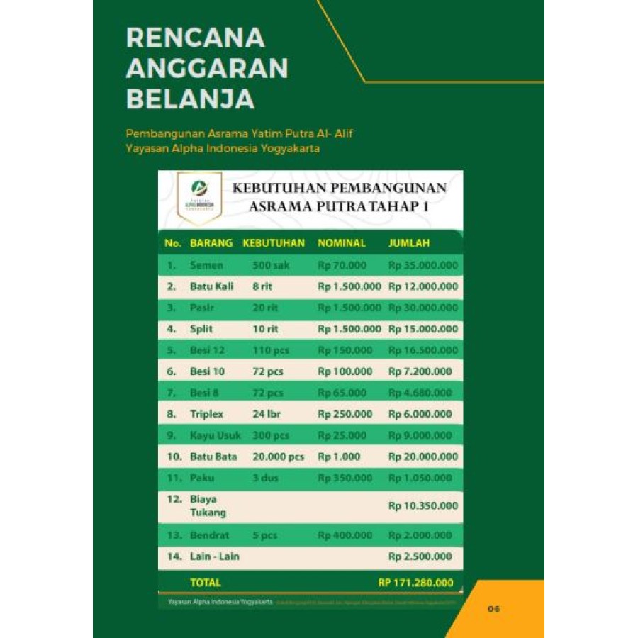 Dengan ini kami merencanakan untuk membangun Asrama Yatim Putra Al Alif